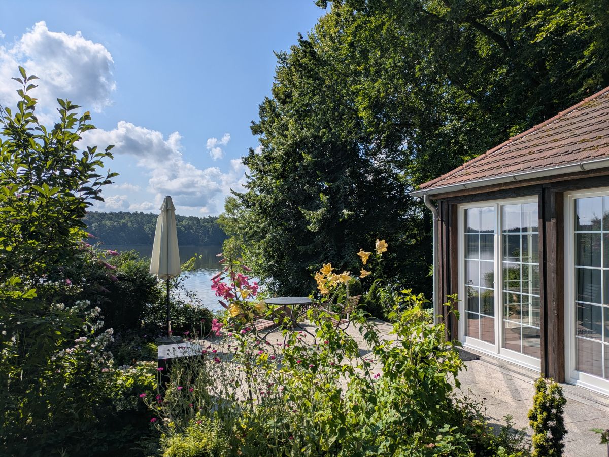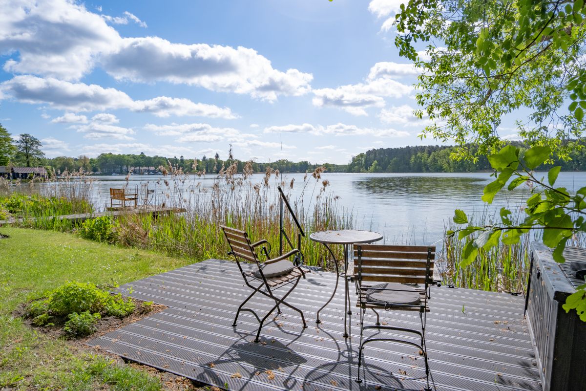 Unser Bungalow und Ferienhaus mit eigenem Seezugang und zahlreichen Terrassen bieten Erholung im Garten und direkt am Wasser. Morgens mit den Fischen um die Wette schwimmen, mittags ein Buch am Ufer lesen und abends den Sonnenuntergang vom Kanu aus genießen – so geht Entschleunigung.